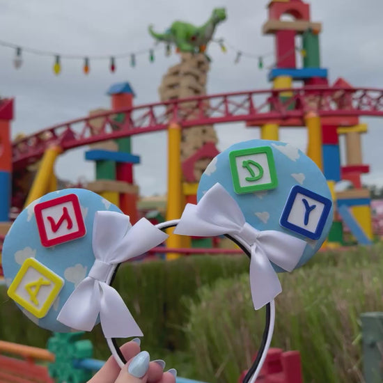**NEW FABRIC! This fabric will look the exact same, but it will now be printed on satin rather than cotton. The headband will also be blue to match the ears. These changes have to be made in order to bring these ears back!